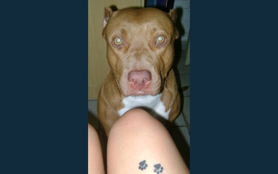 Uma pitbull linda, amorosa, mansa!! Um amor!! Pra quem diz que Pitbull é uma raça perigosa, está muito enganado!